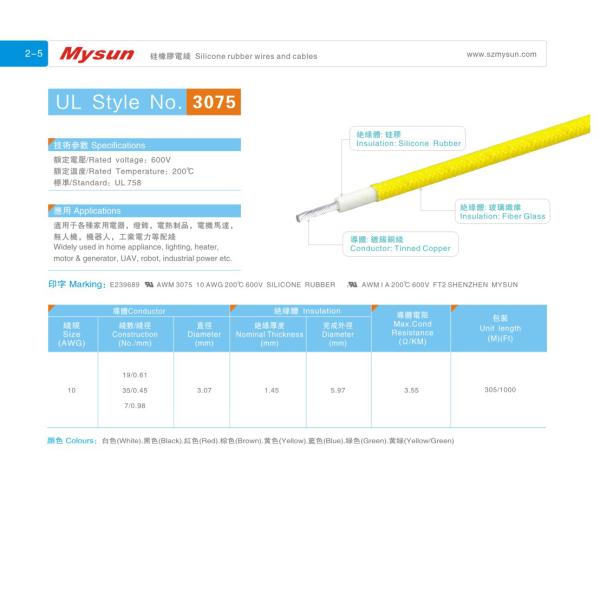 Buy 600V/200C UL758 Silicone Rubber Insulated Wire AWM3075 10AWG FT2 Yellow Robot UAV Heater at wholesale prices