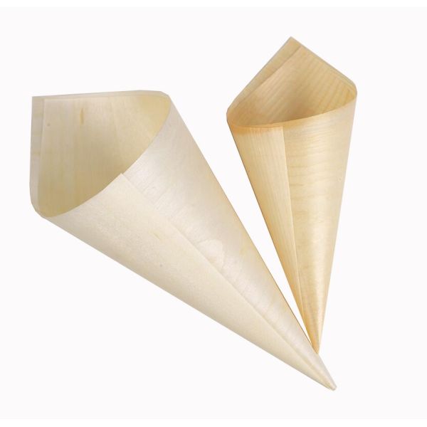 Disposable Wood Cones Biodegradable Disposable Tableware Natural Wood Cones