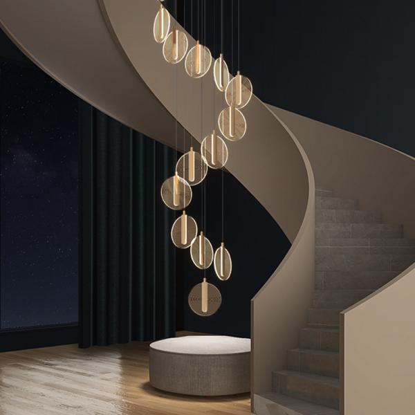 Scandinavian LED Long Line Acrylic Dining Room Creative Living Room Staircase Hotel Lobby Long Chandelier(WH-NC-102)