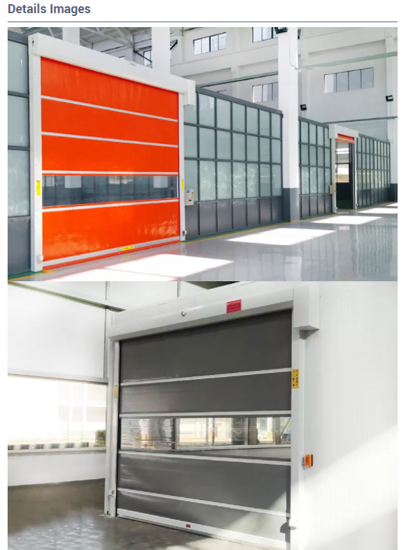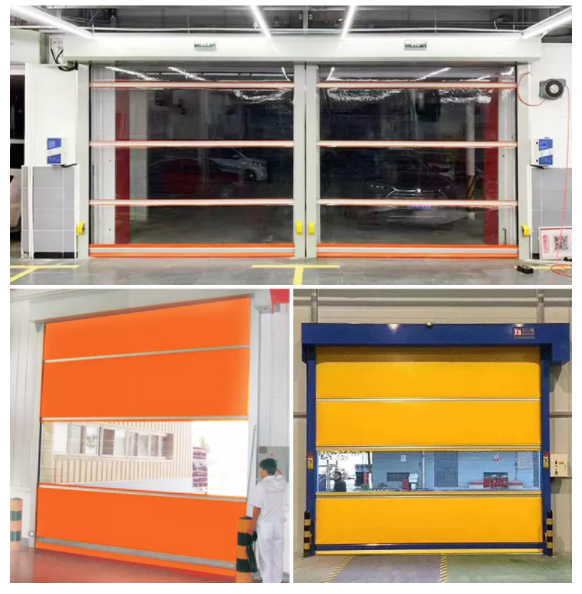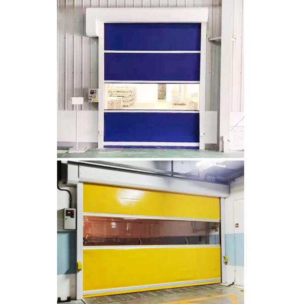 High speed door It can be used in clean workshops (textile,electronics, mechanical printing, chemical, packaging, logistics).Both sides of the door frame are equipped with double-sided sealed brushes, and the bottom is equipped with elastic PVC curtains,which can be tightly combined on uneven ground. The body rises and falls quickly, which plays a role of rapid isolation, dust-proof, wind-proof and odor-proof, so as to ensure a clean working environment. Equipped with a slow start and slow stop function, a long service life, and a safety infrared protection device, which can immediately reverse operation when it senses someone or something under the door to avoid injury to pedestrians, vehicles or other objects. The product has the characteristics of stable operation, high speed, energy saving, environmental protection, dust-proof, insect-proof, easy replacement and easy cleaning.