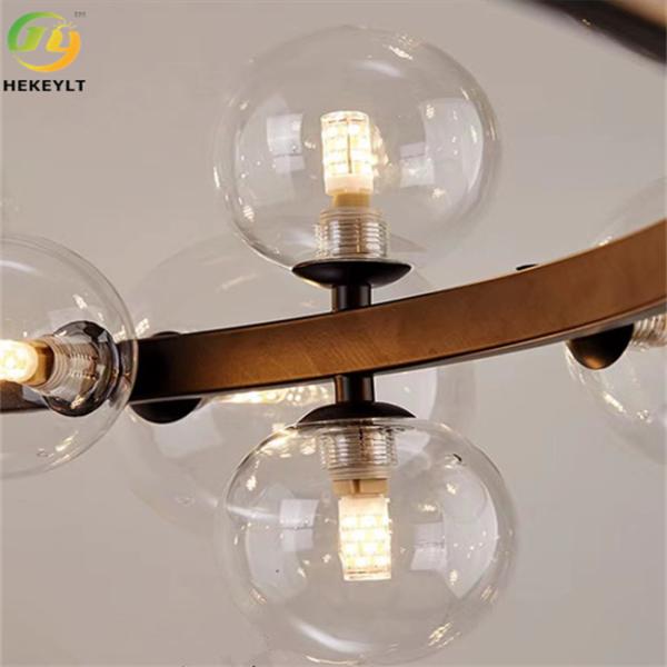 2. This impressive pendant features 15 beautiful clear glass spheres whose distorted shape and frosted interior cast a soft subtle display of light.