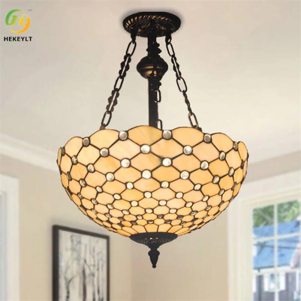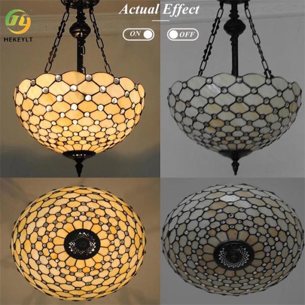 Vintage style design, 100% pure hand-made stained glass, crystal beads as a decoration of the shade, durable and never color fade, this Tiffany chandelier cast a beautiful pattern from looking up, very unique and eye-catching, Perfect light adds elegant to décor of the room. Comes with an adjustable chain which makes this chandelier work on Flat/Sloped/low/high ceilings.