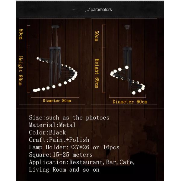 Black staircase shape vintage spiral wrought iron hotel chandelier(WH-CI-157)