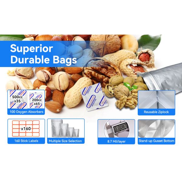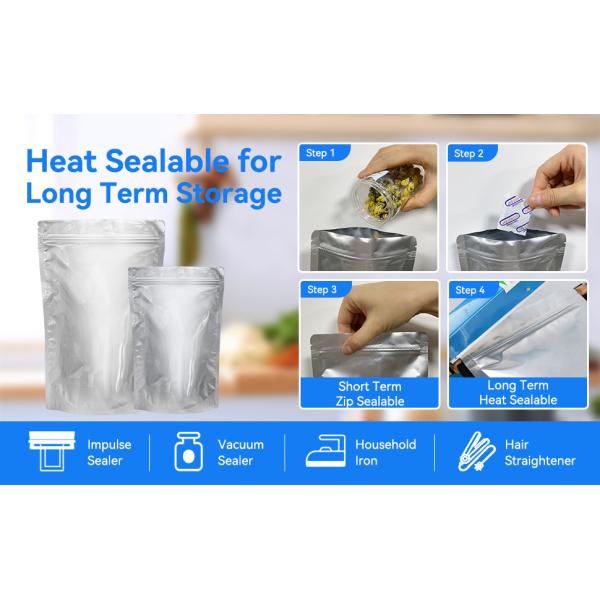Aluminum foil bags made with 3 or 4 layers high resistance material, normally it will have one layer aluminum foil or metalized film in the middle of it to keep the products reach out of sunshine or direct light, this will keep products with longer shelf and have higher barrier properties.