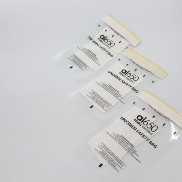Double Pocket Self-adhesive Eco-Friendly Plastic Liquid Bio Hazard Specimen Bag