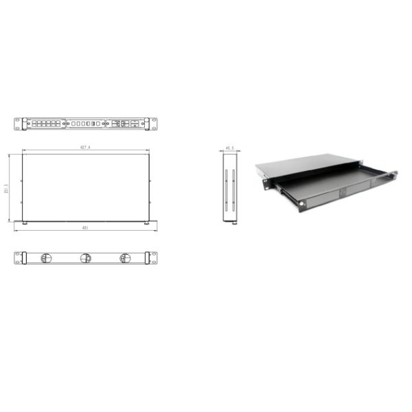 for 19" rack-mount cabinet. Rack mounted. holds up to 3 pcs Fiber