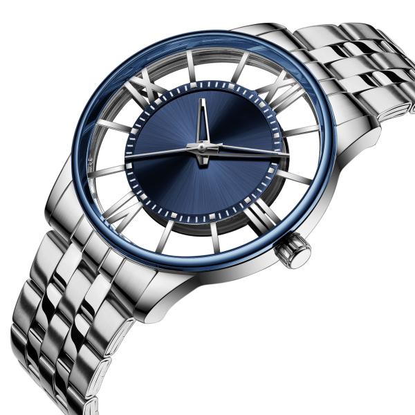 1. Fashion men's watch, transparent case design, unique personality, clear and readable scale.