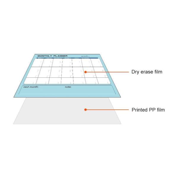 This product is made by PP film lamaniated with dry erasable whiteboard film with custom printing. It will not be wrinkle very easily. the surface can be wrote by whiteboard marker and be dry erased very easily.