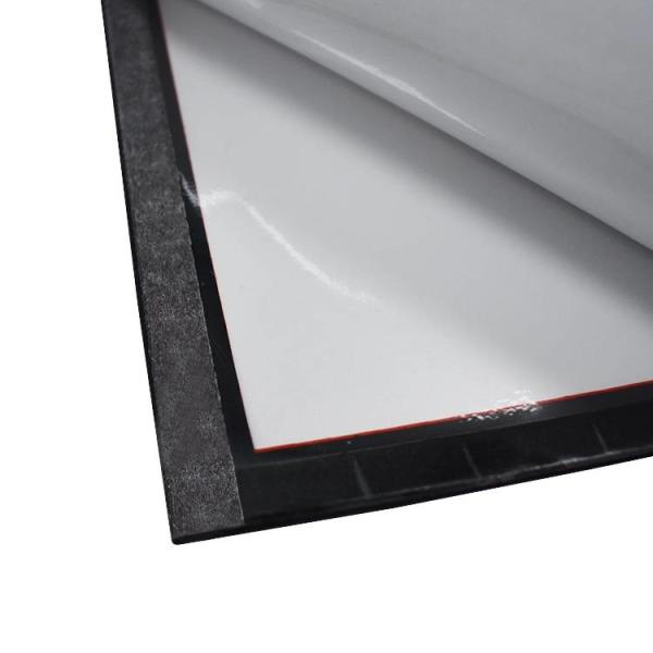 One side is PVC with printed frame, the other side is removable glue, leaves no sticky residues when apply to any smooth surfaces, front side with magnetic closure, easy to insert document and change document. Good for glass, wood, plastic, wall or any smooth surfaces.