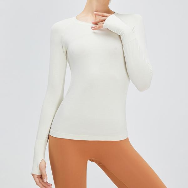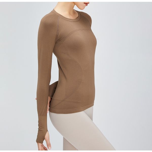 Seamless Long Sleeve Women Sports Equestrian Tops Clothes With Thumb Hole