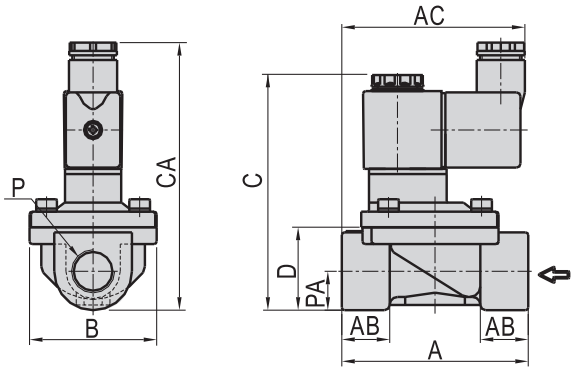Main Dimension of 2V Series Brass Solenoid Valve: