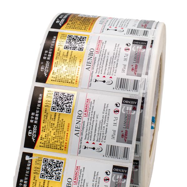 Custom gold foil embossed waterproof adhesive private label wine bottle printing rose red wine label