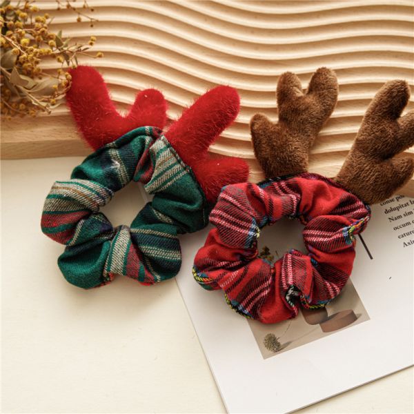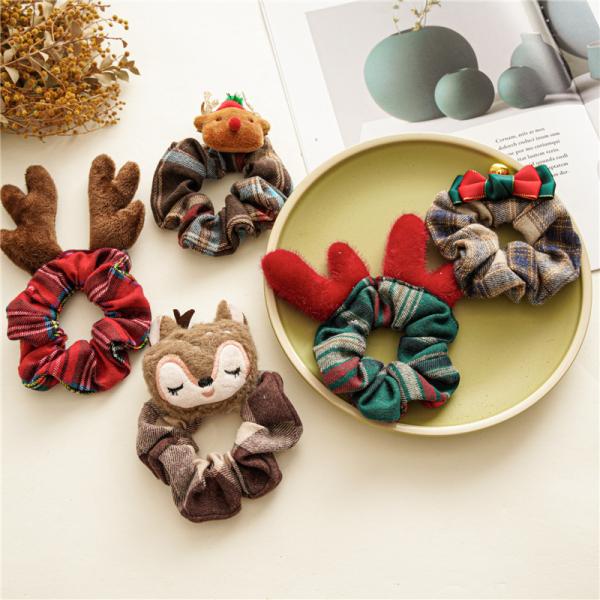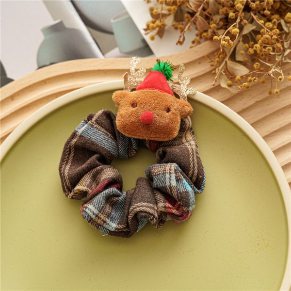 Christmas plaid beaded hair scrunchies women's cartoon lovely animal cloth hoops tied hair rope ornaments