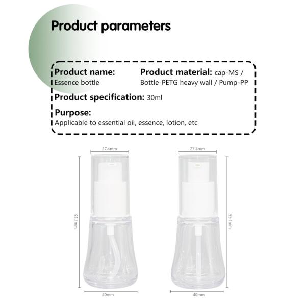| Plastic Type: | PETG heavy wall bottle,PP pump MS cap | Capacity: | 30ml |
