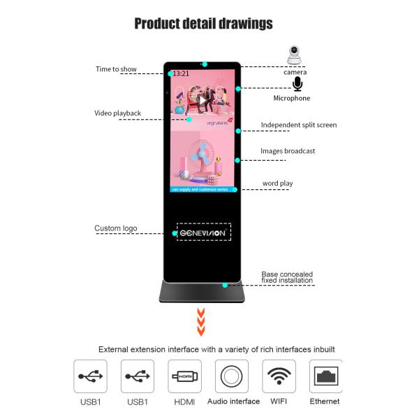 Genevision new model Indoor floor standing touch screen kiosk,sceen size 43",4K UHD resolution.