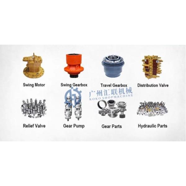 Hydraulic Parts: Hydraulic pump, Travel motor, Swing motor, Travel gearbox, Swing gearbox, Main control valve,