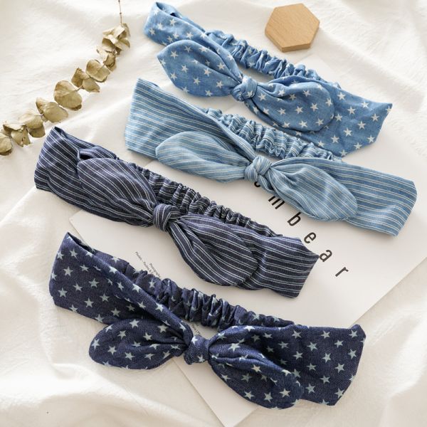 vintage hair bands Knot rabbit ears hair hoop tri-state accessory Denim elastic hair hoop headdress