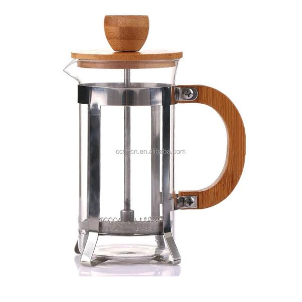 Stainless steel frame portable coffee makers high borosilicate glass Coffee Press bamboo french press with bamboo handle