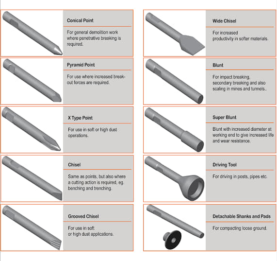 (3) Main Technical Parameters on Rock Breaker Chisel