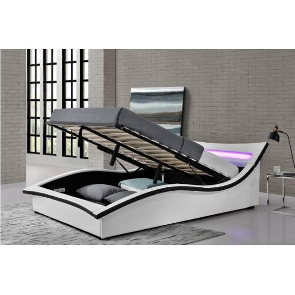 ITALIAN DESIGN CURVE SHAPE FAUX LEATHER PU GAS LIFT BED WITH LED