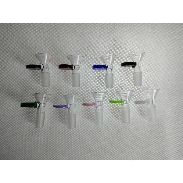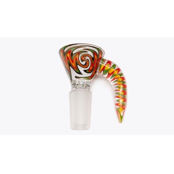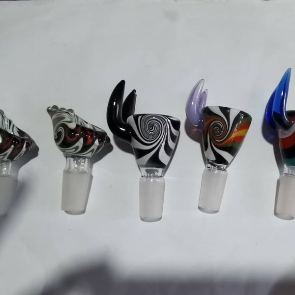 Bong bowls come in many joint sizes but the most common is a 14mm male. All of our bongs come with a basic glass bowl slide but you can also pick up an upgraded bowl with worked glass patterns or a more prominent handle to make it easier to pull away from the pipe for clearing the smoke.