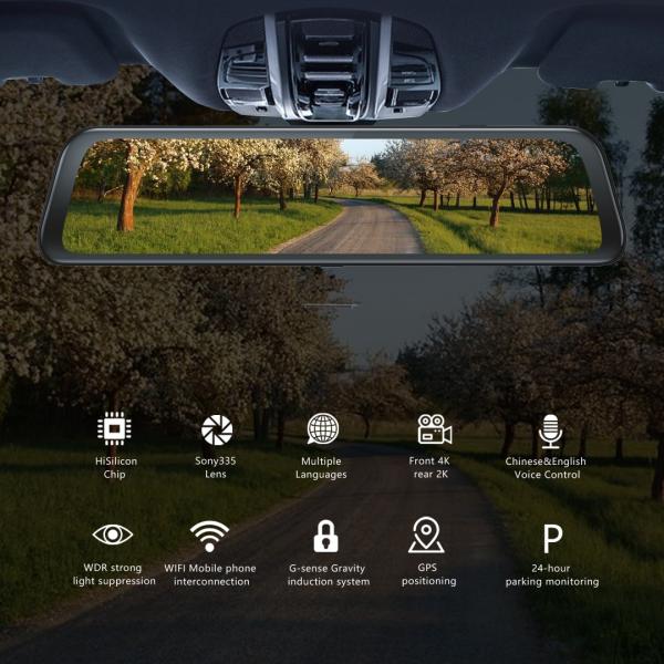 4K GPS Dash Cam 12 Inch Rear View Mirror SONY IMX335 Dash Camera 3840*2160P Car Dvr WIFI Video Recording Super Night Vision Dual Lens
