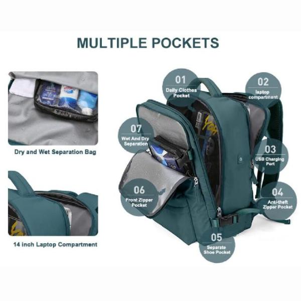 2. Separate Shoe Compartment Design & Wet BagMain pocket x 2,
