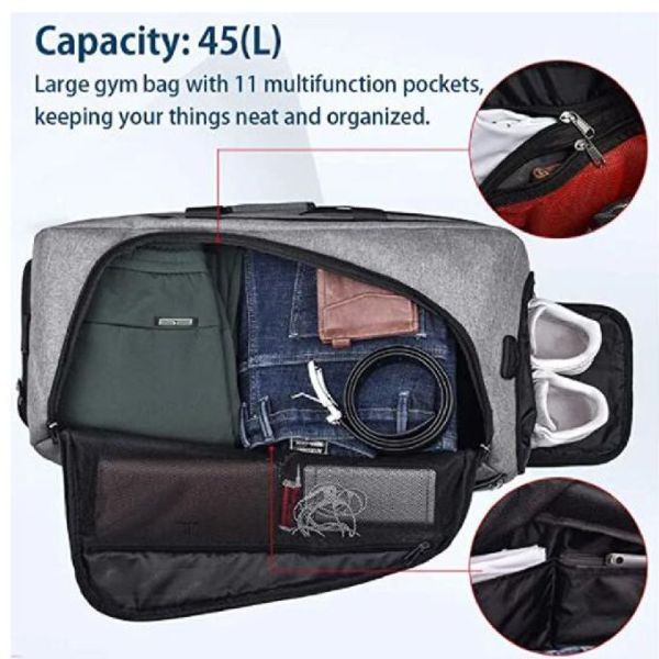 Large 45 Litres Men′S Travel Gym Fitness Sports Bag Hand Luggage Weekender Bag With Shoe Compartment