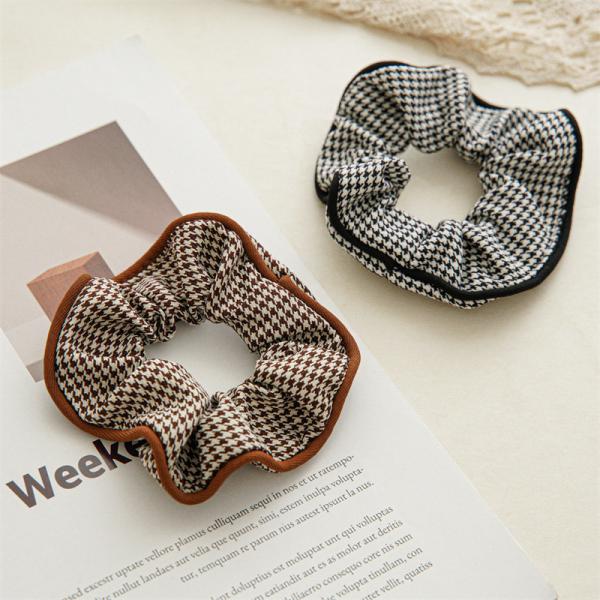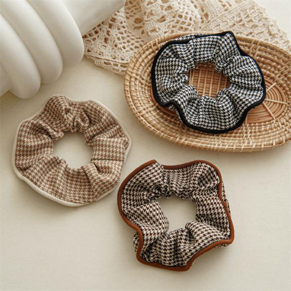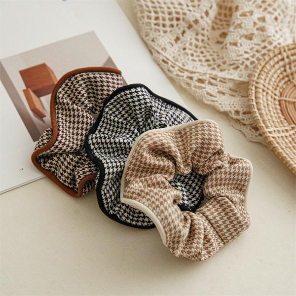 Autumn winter claved fabric houndstooth bird lattice hair band headdress Japanese Korean women's headtie rope
