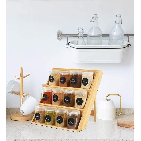 NATURAL BAMBOO: Our bamboo spice rack organizer is made of high-quality, natural bamboo. This eco-friendly material is not only stylish but also durable and easy to clean. The wooden spice rack is coated with a double-layer baking paint that ensures it will not emit any weird smells.