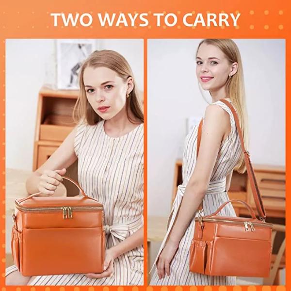 Reusable Nylon Lunch Cooler Bags Made for pu leather +pearl wool+foil , Multiple temperature locking technology can reduce temperature loss and lock cold and heat in independent space.Use for Outdoor meals can be served anywhere with hot, fresh food or cold beer.