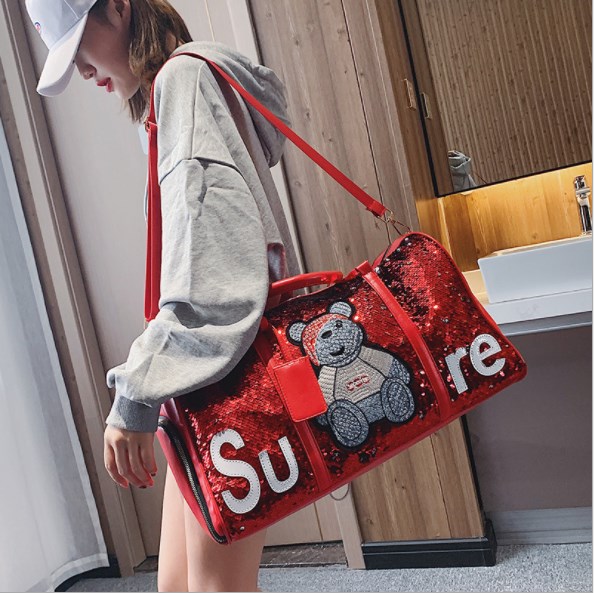 Latest Design PU Sequin Waterproof Duffel Bag Women New Fashion Travel Bags Trolley Luggage Sports Bag For Travelling