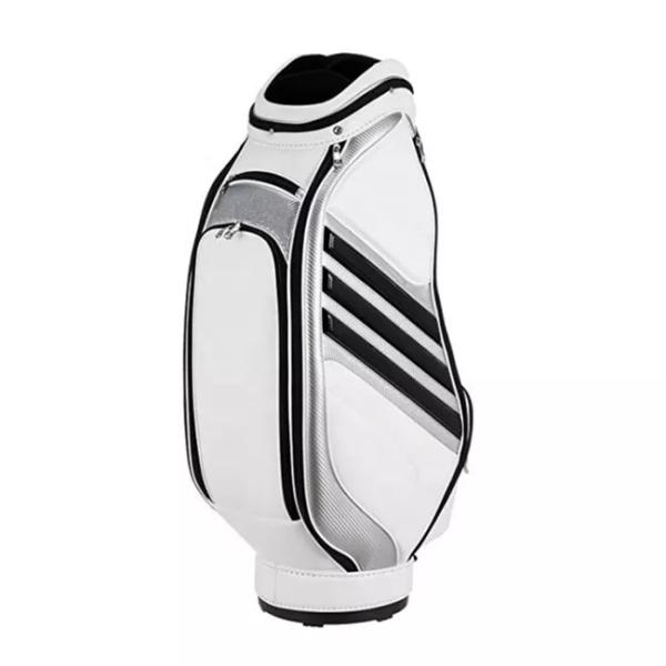 Golf club bag, can store up to 5 clubs, the bottom is anti - wear design, the whole bag is made of PU material, the design of three bars makes the whole bag look more advanced, sports sense