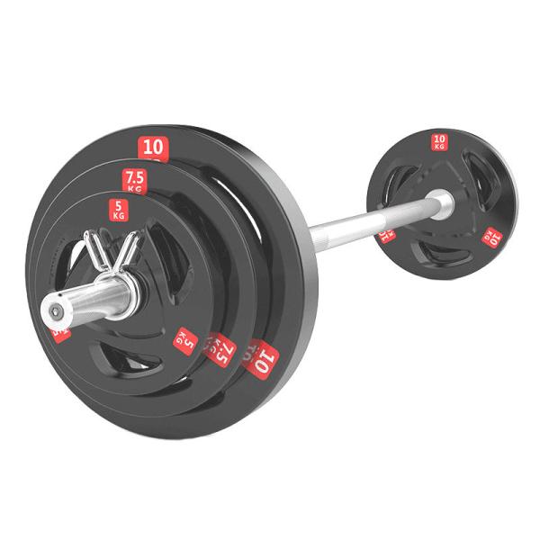 2 he steel sleeve in the middle of the barbell plate is made of thick stainless steel,with fine workmanship, good wear resistance,and it is firm and does not fall off