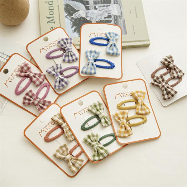 Fabric bow plaid hairpin accessories DIY INS girls baby women's BB hairpin spot wholesale