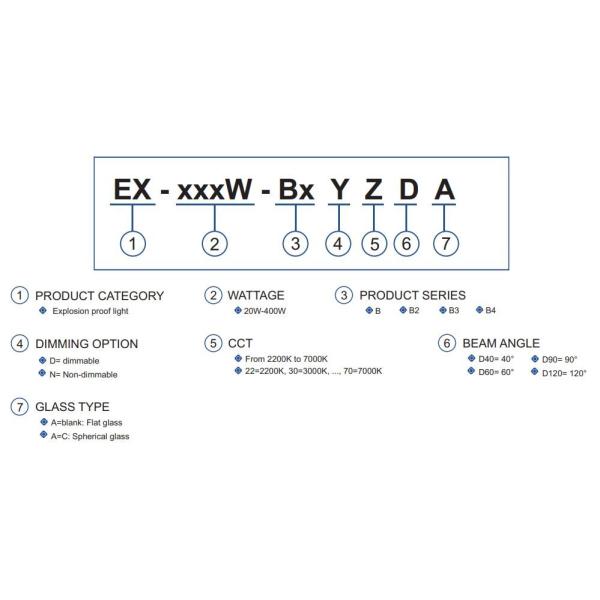 | EX-20W B2YZDA | 20W | AC100-277V/DC12-48V | 2800 | 140 | >70 | 2200K-7000K | 3 hours |