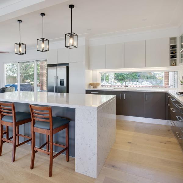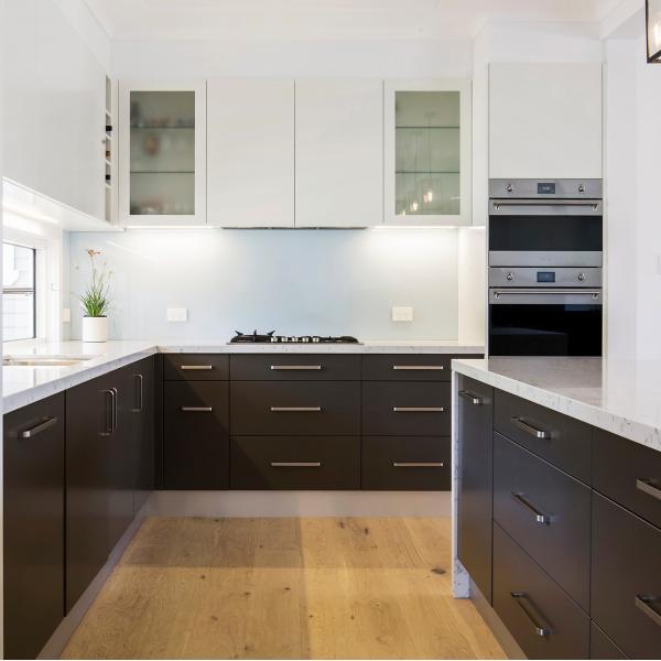 | Shape: | L shaped white plain melamine kitchen cabinet with island |