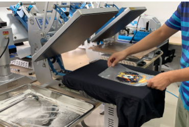2. The printed pattern will enter the powder shaker, the machine will automatically cover the hot melt powder, and quickly shake to make the hot melt powder evenly covered, and heat at a high temperature to completely dissolve the hot melt powder on the film