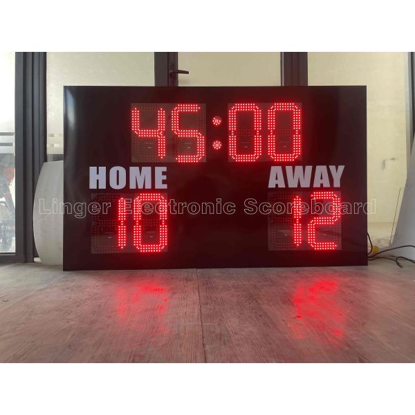 The frame of the scoreboard is made of stainless steel to prevent cracking caused by prolonged exposure to the sun. The powder sprayed is of an outdoor reinforced grade.The front panel uses a 4mm thick acrylic transparent plate. Wireless RF is based on long range (>200 meters) . And remote control is with LCD screen.The display is fully waterproof IP65. The powders sprayed are all outdoor grades.