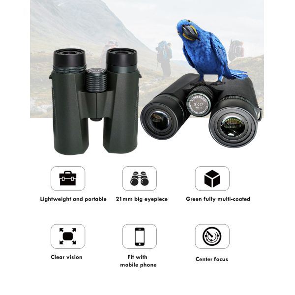 2021 New Sightseeing 10X42/8X42 Antifog IPX7 Waterproof Hunting Roof Prism BAK4 Binoculars for Adults
