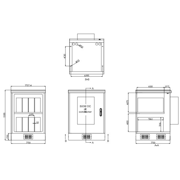 IP55 Thermostatic Outdoor Battery Cabinet 750×750×1100 Air Conditioner Battery Storage Cabinet