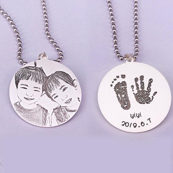 | Product Name | Customizable Engraved Family Couple Photo Round Pendants Of Silver Sterling 925 /Stainless Steel |