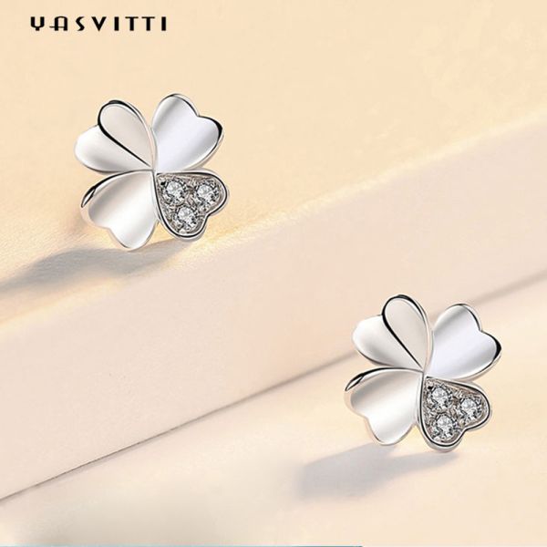 Top Quality Four Leaf Clover Stone 925 Silver Needle Jewelry Crystal Stud Earrings