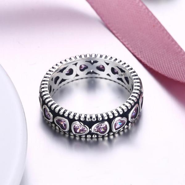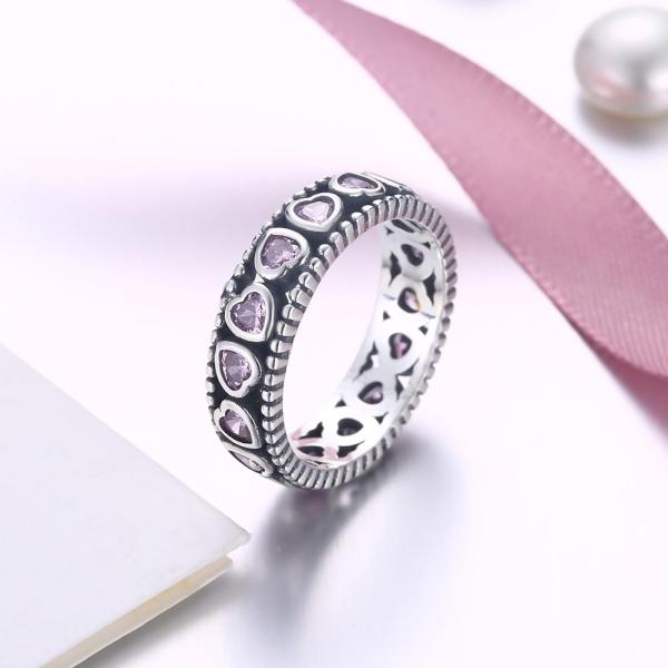 Pictures of Temperamental Queen'S Crown Pink Heart Pave Diamond Ring S925 Diamond-Encrusted Lady'S Ring