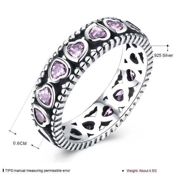 Datasheet of Temperamental Queen'S Crown Pink Heart Pave Diamond Ring S925 Diamond-Encrusted Lady'S Ring