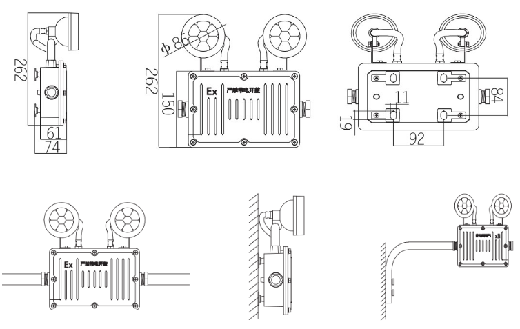 Emergency Led Sign Light Twin Spots Rechargeable Led Light IP54 Aluminum Housing