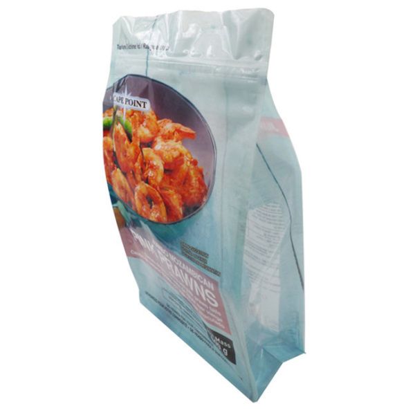 Eight side sealing resealable nylon doybag heat seal stand up zipper bag for frozen prawns ,