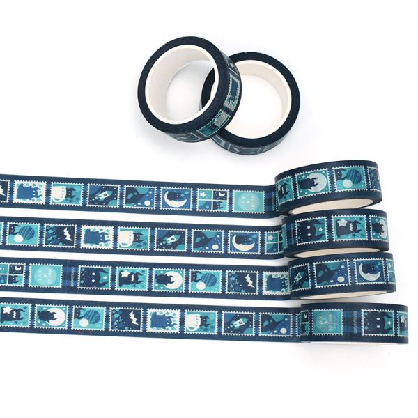| Foil washi tape | 15mm*10m | CMYK+Foil | 1 roll/shrink+2 round stickers | Available |