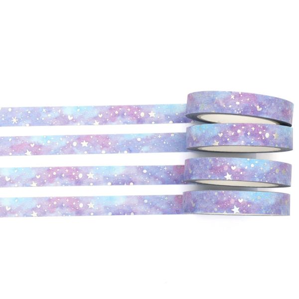 | Foil washi tape | 15mm*10m | CMYK+Foil | 1 roll/shrink+2 round stickers | Available |