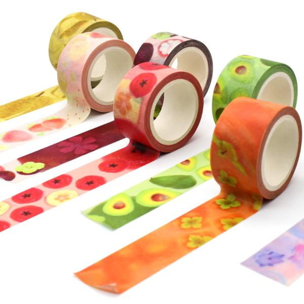 | Profiled washi tape | 15mm*10m | CMYK+Die cut | 1 roll/wrinkle pack+2 round stickers | Available |